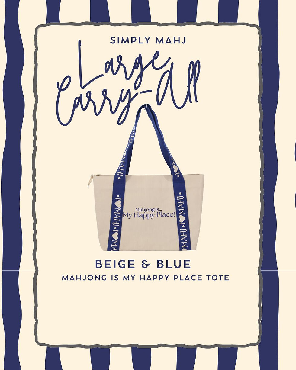 Mahjong is My Happy Place Everyday Tote Bag - Beige & Blue